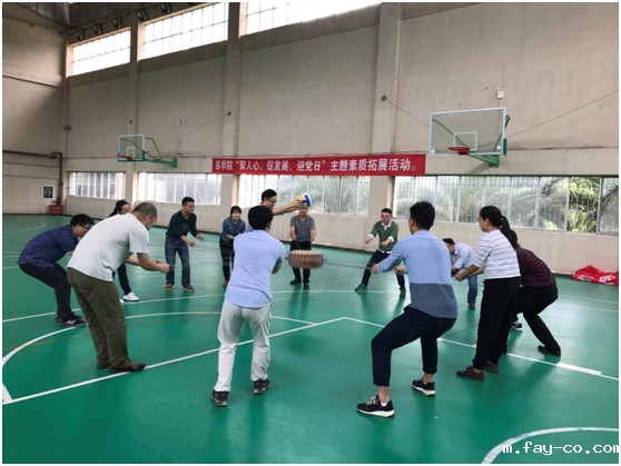 为迎接中国共产党成立96周年和党的十九大胜利召开,进一步引导全院党员干部增强政治意识、大局意识、核心意识、看齐意识,扎实推进“两学一做”学习教育常态化制度化,根据学校组织部《关于开展“七·一”前后重点工作的通知》贵大党组通〔2017〕18号文件要求,结合学院实际,医学院党委于2017年6月29日在贵州大学北校区体育馆副馆举行“不忘入党初心、重温入党誓词”主题教育活动暨“聚人心、促发展、迎党日”主题素质拓展活动,医学院党委书记陈莉琼同志带领全院教职工党员、学生党员以及教职工参加了此次活动。