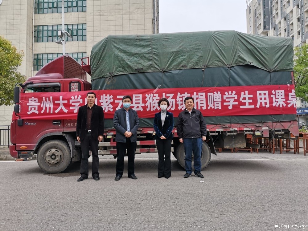 为了更好地助力紫云县猴场镇教育扶贫,4月21日,贵州大学向紫云县猴场镇平洋小学捐赠学生课桌仪式在西校区举行,此次捐赠学生课桌200张,资产管理处处长周昌洪、对外合作处处长刘颖、医学院党委书记吴涛、医学院党委副书记吴绍奎出席了捐赠活动。