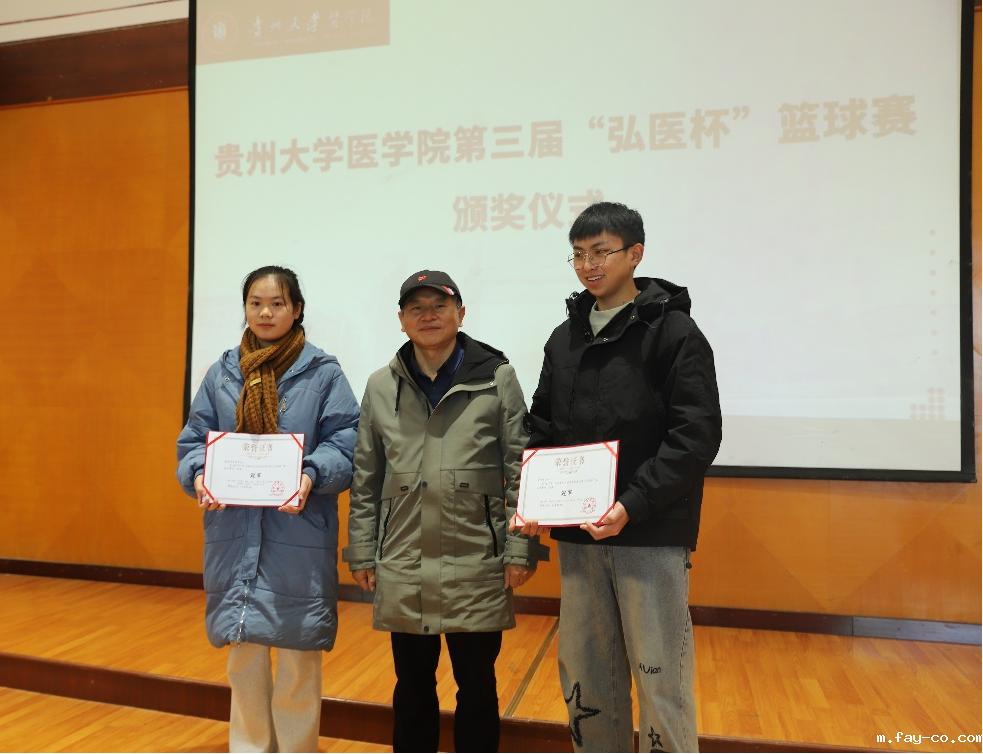 贵州大学正处级组织员兰雄为“弘医杯”篮球赛冠军团队颁奖。希望同学们在忙碌的学业之余,能够继续加强体育锻炼,积极参与各类体育活动,享受运动带来的快乐与满足,让青春在汗水中绽放更加绚丽的光彩。